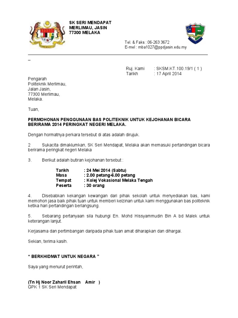 Contoh Surat Memohon Menggunakan Bas Sekolah Pdf